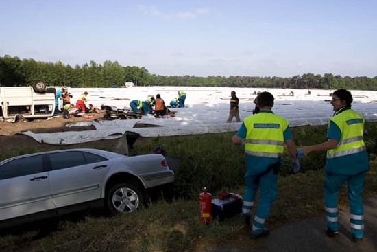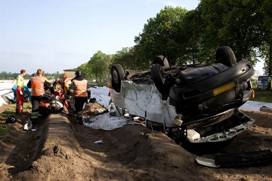 de auto gehaald worden en is met spoed naar het ziekenhuis over gebracht.