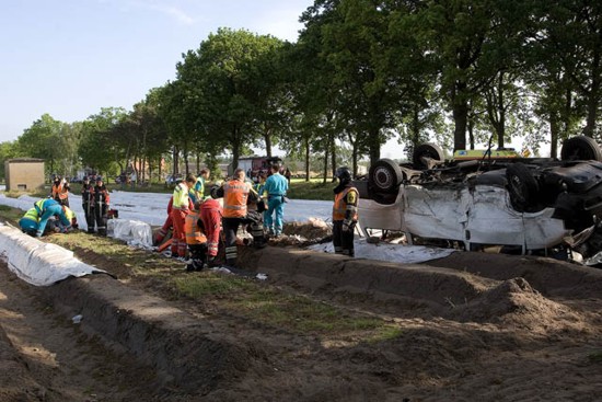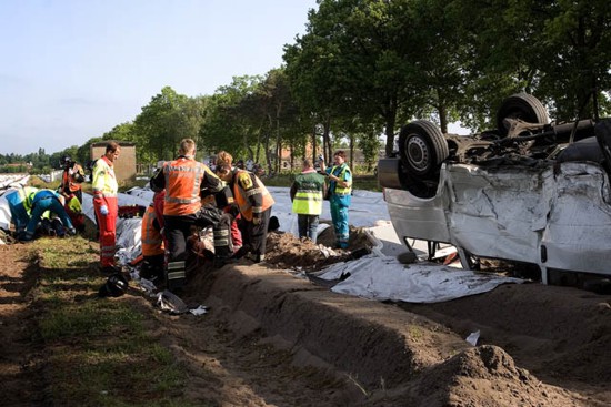 is vervolgens over een vluchtheuvel gekomen en twee keer over de kop