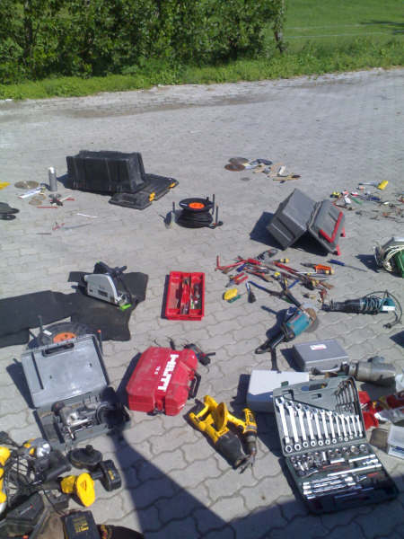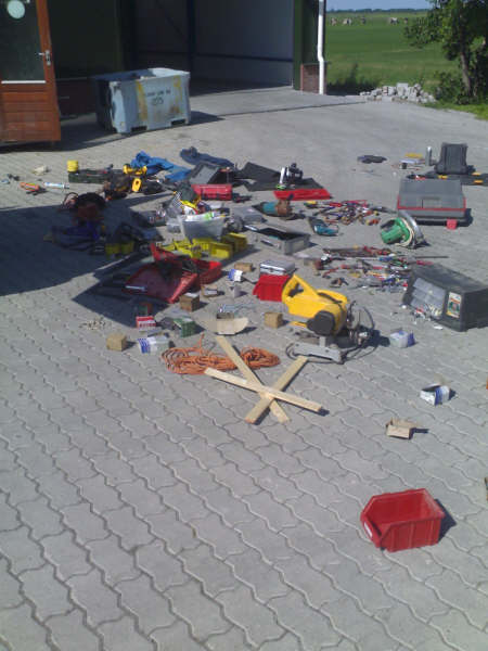 lege kratten, kwamen in de berm terecht.