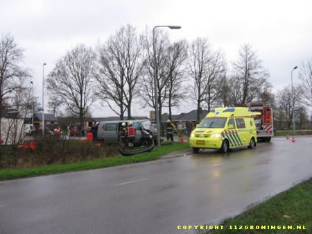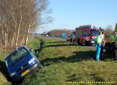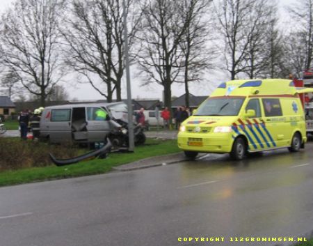 bestuurder van de bestelbus moest door de brandweer van Surhuisterveen