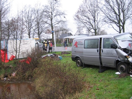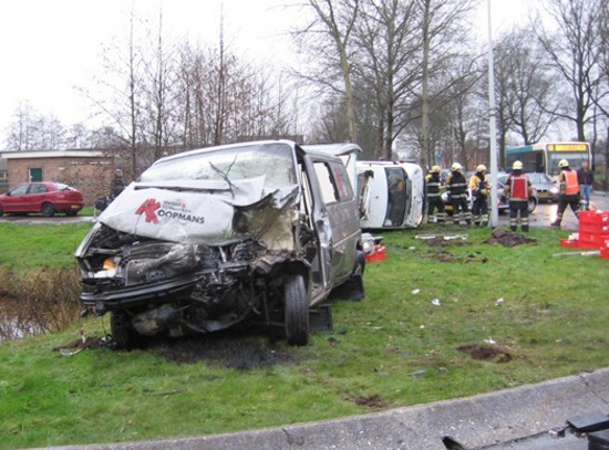 ongeval tussen een busje en een kleine vrachtauto is een persoon bekneld
