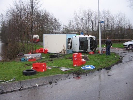 Deze bestuurder kwam met de schrik vrij, wel raakte de auto zwaarbeschadigd en de lading,