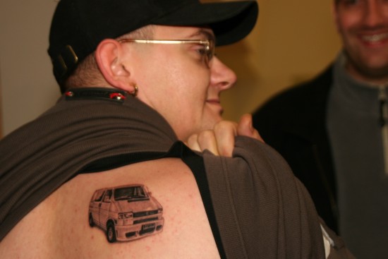 met een foto van zijn Transporter naar de tattoo shop in Winschoten gegaan