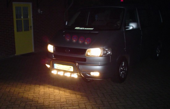 Hij heeft extra lampen gemonteerd onder de bull bar , staat errug goed